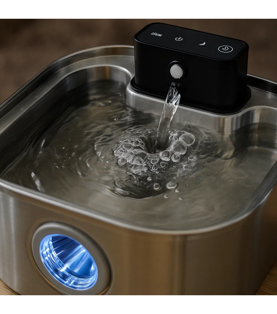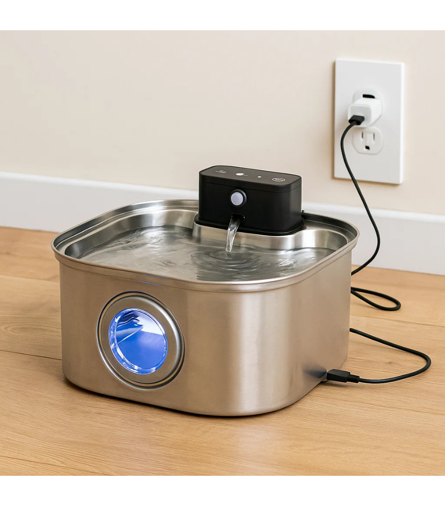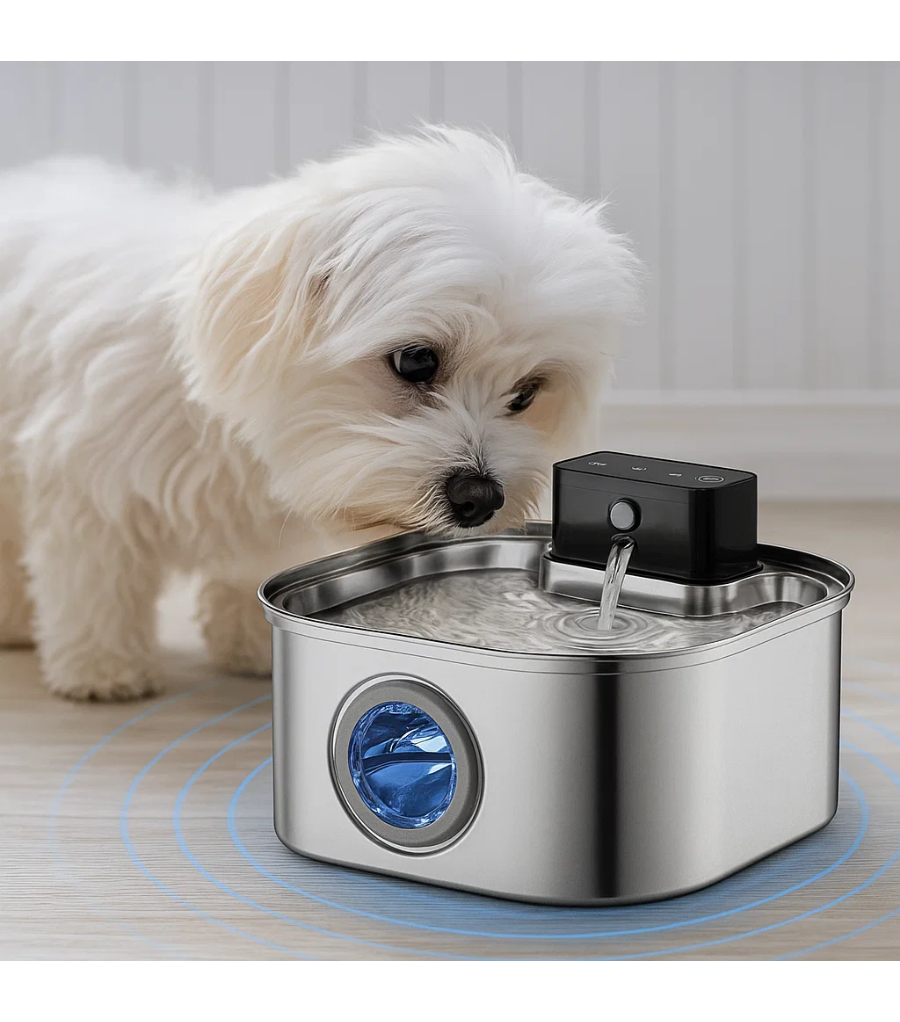 O Bebedouro Automático Inteligente 3,2L oferece uma solução moderna e funcional para a hidratação diária do seu pet. Com um design sofisticado, base quadrada estável e acabamento em aço inoxidável 304, ele é ideal para gatos e cães de pequeno a médio porte.