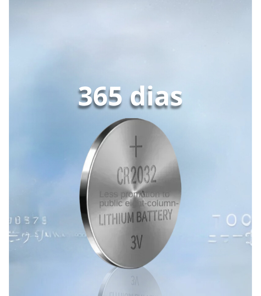 Bateria CR2032 inclusa com autonomia de até 12 meses. Sem recarga, sem preocupação.